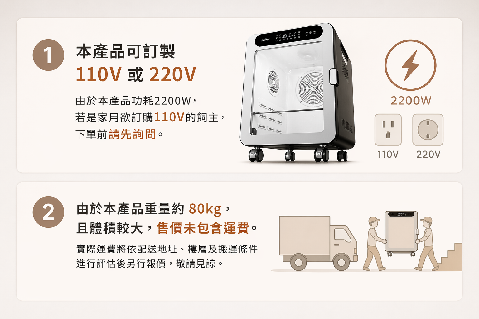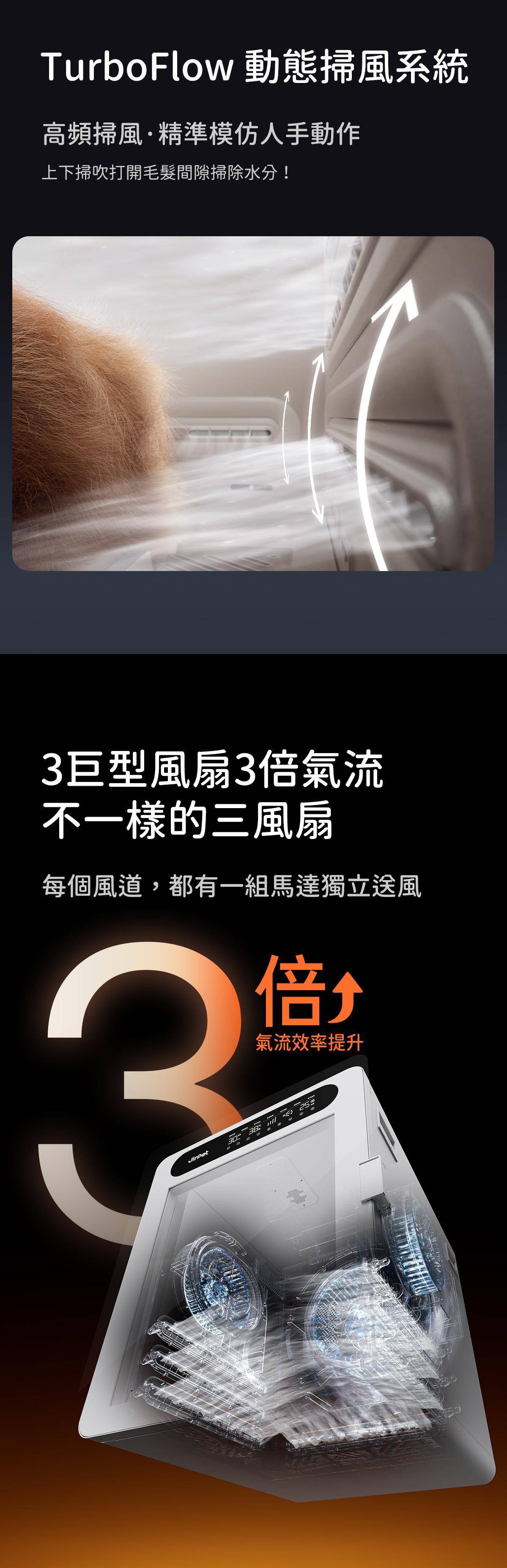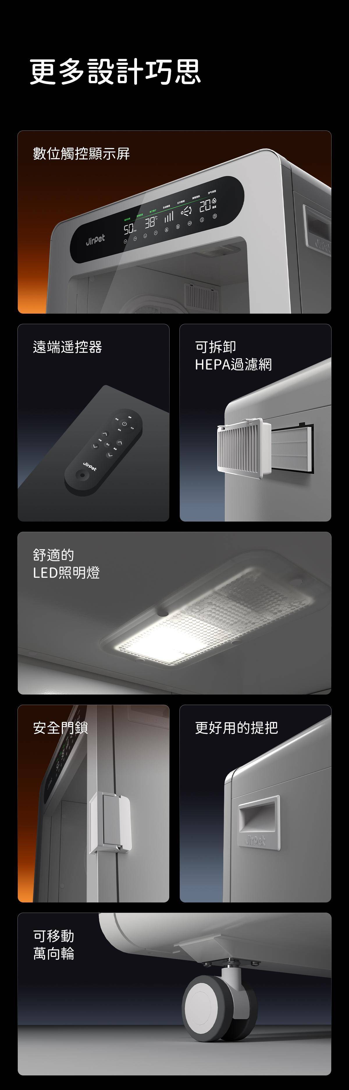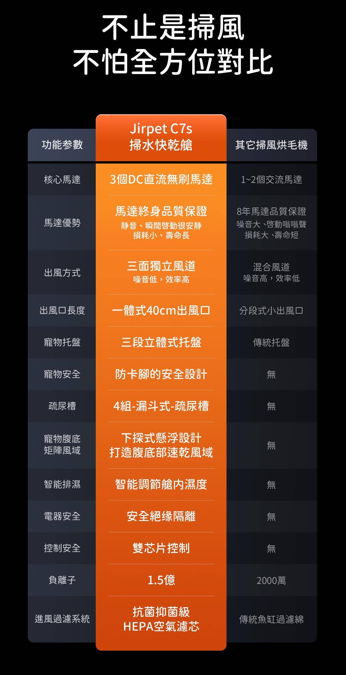 商品詳情 【Jirpet 大型 C7S|TurboFlow三渦輪風暴快乾烘毛室】【專為大型寵物而生的吹乾解決方案】針對毛量多、體型大的寵物設計, 從風量、風壓到覆蓋範圍全面升級, 讓過去需要長時間吹乾的過程,變得輕鬆且高效率。 TWD $49,980 TWD $39,980